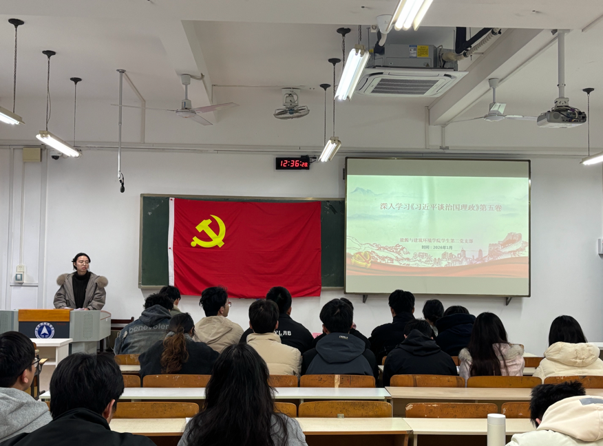2026年1月4日,能源与建筑环境学院学生第二党支部于明志楼221教室召开支部党员大会,会议围绕深入学习《习近平谈治国理政》第五卷展开,支部书记及全体党员参会。